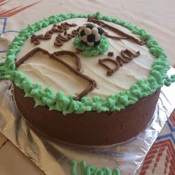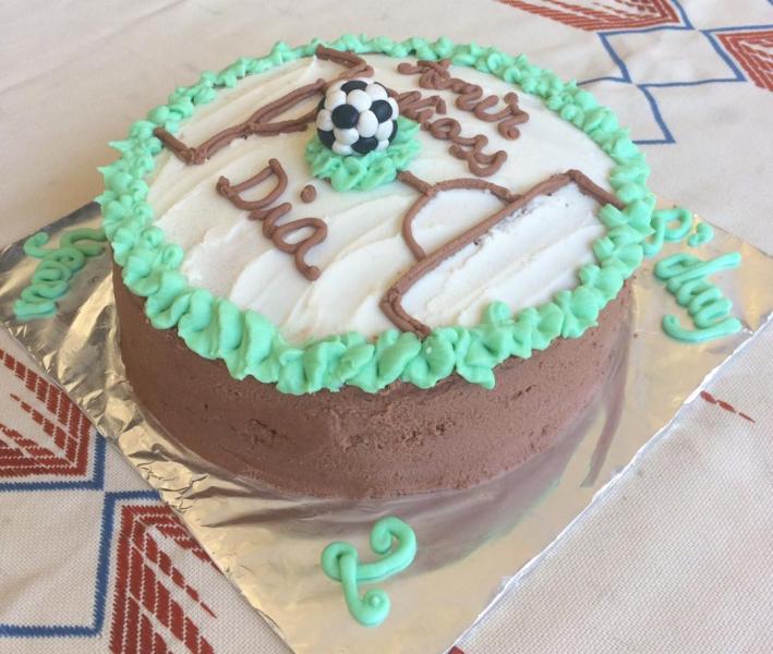 Football theme vanilla and chocolate cake