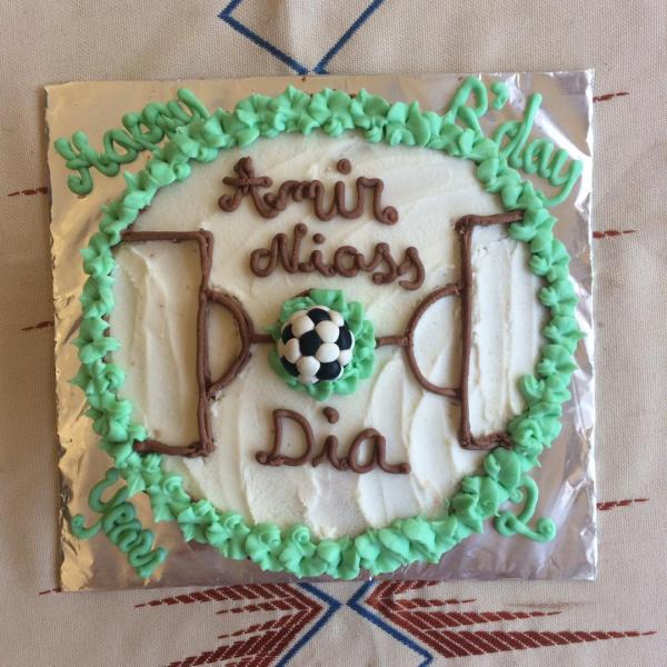 Football theme vanilla and chocolate cake.