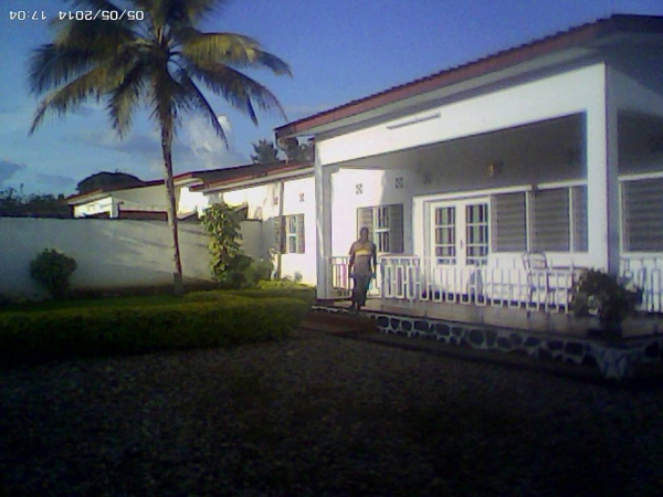 The house is located in Kinindo with 3 bedrooms, 2 bathrooms, a large living room including dining room, a balcony, a well equipped kitchen, garden and parking.