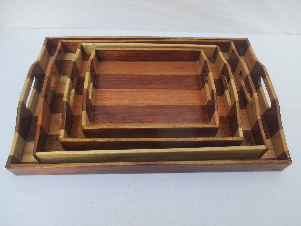 Lot de 4 plateaux en bois